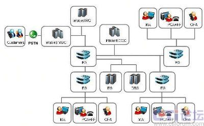 訊鳥于2007年初開始建設(shè)“啟通寶”呼叫中心平臺(tái)。該平臺(tái)的主體架構(gòu)由控制中心和媒體網(wǎng)關(guān)組成,其中在北京建設(shè)的控制中心類似于系統(tǒng)的“主大腦”,在上海、廣州等其他核心城市建設(shè)第二級(jí)的控制中心,類似于系統(tǒng)的“從大腦”?刂浦行牡墓δ苁枪芾砗涂刂疲c企業(yè)客戶相連接。媒體網(wǎng)關(guān)類似于系統(tǒng)的“手腳”,其功能是采取行動(dòng),進(jìn)行PSTN和IP網(wǎng)語音的轉(zhuǎn)換等處理。另外,各控制中心負(fù)責(zé)所屬區(qū)域的業(yè)務(wù),同時(shí)互為備份。比如,北京的控制中心平時(shí)負(fù)責(zé)華北的業(yè)務(wù),上海負(fù)責(zé)華東的業(yè)務(wù),深圳負(fù)責(zé)華南的業(yè)務(wù),一旦某一分中心發(fā)生故障或呼叫量超過額定處理能力時(shí),異地分中心便能接管或分擔(dān)該分中心的業(yè)務(wù)。