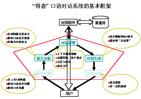 在現(xiàn)有的數(shù)據(jù)通信和信息服務(wù)的技術(shù)平臺(tái)上,加入"得意口語對話系統(tǒng)運(yùn)行平臺(tái)",就能夠讓用戶在通過Internet/SMS/WAP等各種通信手段,在電腦、手機(jī)等設(shè)備上以自然語言的形式享受相關(guān)領(lǐng)域的智能互動(dòng)信息服務(wù)。