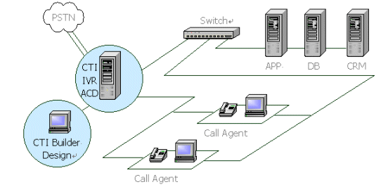 。。CTI Builder本身是一個(gè)軟交換機(jī),具有普通程控交換機(jī)的功能,如:分機(jī)切轉(zhuǎn)、外線呼入、內(nèi)線呼出、轉(zhuǎn)接電話、代接電話等等,同時(shí)還具有一些高級(jí)功能如:語音信箱、排隊(duì)機(jī)、內(nèi)線組呼叫、高級(jí)選線等功能。也就是說,系統(tǒng)已經(jīng)提供了呼叫中心通用的功能,用戶只需要定義自己的業(yè)務(wù)而不必關(guān)心呼叫中心的內(nèi)部交換。