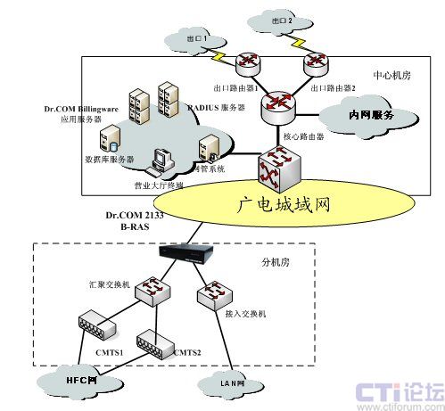 系統(tǒng)組成:由寬帶計(jì)費(fèi)及業(yè)務(wù)綜合管理系統(tǒng)軟件、硬件平臺(tái)組成。