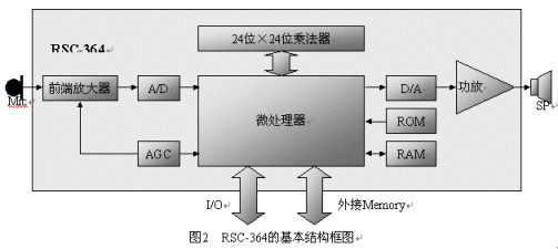 由美國(guó)Sensory Integrated Circuit公司開發(fā),2000年開始生產(chǎn),是一顆為消費(fèi)類電子產(chǎn)品應(yīng)用的低價(jià)位的語(yǔ)音識(shí)別專用芯片,其結(jié)構(gòu)圖如圖2所示。