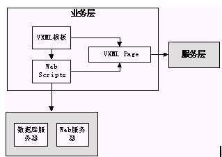 通過上圖可以看出,二次開發(fā)的主要任務就是業(yè)務層的開發(fā),簡單的說,就是以Voice XML為核心,以Web Scripts語言為業(yè)務接口,形成完整的業(yè)務流程交由服務層處理。