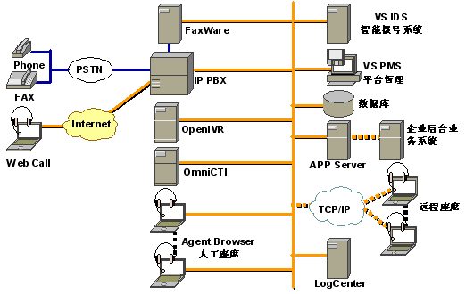 2.座席電話采用完全的軟電話技術(shù),利用座席PC機(jī)的聲卡就可以接聽(tīng)電話或打電話,無(wú)需專門(mén)的語(yǔ)音電話線,PC機(jī)只要接到企業(yè)的局域網(wǎng)上就可以工作,可以進(jìn)行語(yǔ)音通信,大家節(jié)省了布線工作,座席可以靈活移動(dòng),只要計(jì)算機(jī)網(wǎng)絡(luò)到的地方就可以設(shè)立座席