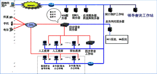 。。可能有人會問,已經(jīng)有了患者咨詢電話,為什么還要建設(shè)醫(yī)院客戶服務(wù)中心?電話是最原始的溝通手段,而且電話有它不可彌補(bǔ)的缺陷。電話只是一對一的服務(wù),如果有第2個(gè)人打電話進(jìn)來只能聽見占線的聲音。如果訪問量很大的話,沒有多少人能真正得到專家的指導(dǎo)?蛻舴⻊(wù)中心完全解決了這個(gè)問題,只要有一臺綜合語音服務(wù)器就可以容納至少200人同時(shí)在線,而且系統(tǒng)運(yùn)行正常;訪問量增加的同時(shí)也能夠增加信息咨詢費(fèi)的收入。