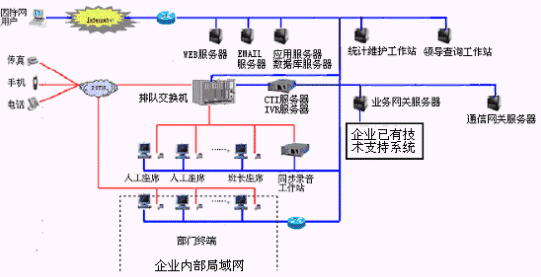 對于大中型的企業(yè)客戶服務(wù)中心系統(tǒng),可選用排隊交換機作為語音接入設(shè)備,保障系統(tǒng)的高可靠性和穩(wěn)定性;對于20個以下座席的中小型企業(yè)客戶服務(wù)中心系統(tǒng),則建議使用基于計算機語音板卡的形式,可以減少企業(yè)投資,同時具有良好的系統(tǒng)性能;以確保合理的、較少的投入,獲取最佳的配置,滿足不同企業(yè)()的需求。