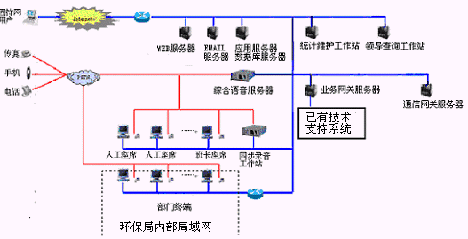 該系統(tǒng)利用環(huán)保局現(xiàn)有的信息網(wǎng)絡(luò)資源,將自動語音查詢、人工服務(wù)、信息資料處理緊密結(jié)合起來,為人民群眾提供全天候24小時不間斷的優(yōu)質(zhì)服務(wù)。