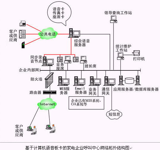 對于20個以下座席的中小型家電企業(yè)呼叫中心系統(tǒng),則建議使用基于計算機(jī)語音板卡的形式,可以減少家電企業(yè)投資,同時具有良好的系統(tǒng)性能;以確保合理的、較少的投入,獲取最佳的配置,滿足不同家電企業(yè)的需求。