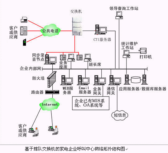 對于大中型的家電企業(yè)呼叫中心系統(tǒng),可選用排隊交換機(jī)作為語音接入設(shè)備,保障系統(tǒng)的高可靠性和穩(wěn)定性;