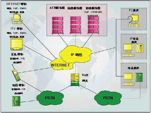 | 集中管理、分布式座席 | 基于IP網(wǎng)絡、先進的ACD、用戶端軟件 |