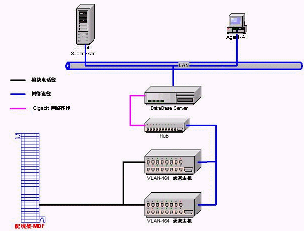 VLAN Lan-based數(shù)字錄音系統(tǒng)采用全網(wǎng)絡(luò)架構(gòu),突破了原有使用錄音卡及工控機(jī)方式的局限性與高成本。使您的錄音系統(tǒng)不再需要工控機(jī),安裝升級擴(kuò)展完全不受工控機(jī)擴(kuò)展槽及硬件兼容性的限制。VLAN錄音系統(tǒng)推薦采用PC Server作為錄音存儲服務(wù)器,通過網(wǎng)絡(luò)協(xié)議與VLAN硬件相連。