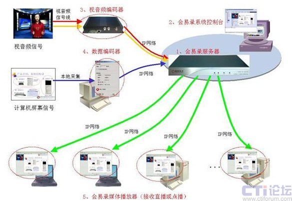 同時系統(tǒng)具備直播、點播功能,用戶使用IE瀏覽器即可接收會議的實時直播或進行事后點播,通過直播或點播可同步觀看到會議中視音頻和數(shù)據(jù)內(nèi)容,觀看會議的效果如同身處會場之后。會易錄極大地擴展了視頻系統(tǒng)的功能和應用,適合任何已有或擬建視頻會議系統(tǒng)的用戶使用。