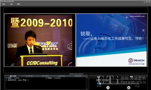 本次論壇分為電力企業(yè)信息化高峰論壇、電力企業(yè)“十二五”信息化藍(lán)圖展望、電力信息化標(biāo)桿研究及評(píng)選結(jié)果發(fā)布、研討國際電力信息化標(biāo)桿發(fā)展方向、研討“智能”落地打造中國智能特色五大議題。深圳銳取受主辦方委托為論壇提供全程錄播服務(wù)。相比傳統(tǒng)攝像機(jī)記錄會(huì)議的方式,銳取多媒體錄播系統(tǒng)實(shí)現(xiàn)了會(huì)議現(xiàn)場視頻與講演者PPT同步完整記錄,新穎的記錄方式受到了主辦單位和與會(huì)者的好評(píng)。