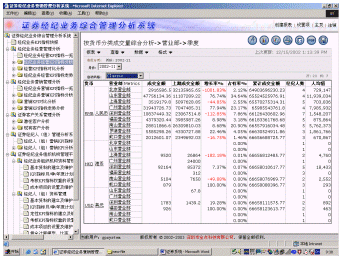 深圳市金點(diǎn)科技有限公司率先采用國際先進(jìn)的商務(wù)智能(BI)和數(shù)據(jù)挖掘技術(shù)、借鑒國外證券行業(yè)成熟的管理經(jīng)驗(yàn),結(jié)合國內(nèi)證券行業(yè)的特點(diǎn),推出"證券經(jīng)紀(jì)業(yè)務(wù)綜合管理分析系統(tǒng)",該系統(tǒng)是證券經(jīng)紀(jì)業(yè)務(wù)的集中管理和決策分析系統(tǒng),具有很強(qiáng)的靈活分析功能。該系統(tǒng)主要是對(duì)證券經(jīng)紀(jì)業(yè)務(wù)經(jīng)營決策、市場(chǎng)營銷和客戶服務(wù)進(jìn)行管理和分析,為證券經(jīng)紀(jì)業(yè)務(wù)管理部門加強(qiáng)對(duì)營業(yè)機(jī)構(gòu)管理、制定營銷戰(zhàn)略、加強(qiáng)對(duì)證券經(jīng)紀(jì)隊(duì)伍的建設(shè)和提高客戶服務(wù)質(zhì)量提供科學(xué)的決策依據(jù)。