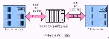 tyyy因為信令標(biāo)準(zhǔn)不同,部分國外通信設(shè)備無法與國內(nèi)通訊網(wǎng)互通互連,SPAS-2000可編程交換機接口豐富,支持信令標(biāo)準(zhǔn)全面,成本低廉,可以實現(xiàn)R2MF、SS7、ISDN PRA、CAS、接入網(wǎng)V5信令等標(biāo)準(zhǔn)之間的轉(zhuǎn)換。當(dāng)輸入和輸出的中繼接口不同時,其語音編碼可能不同,可利用多功能信號音板實現(xiàn)語音編碼的轉(zhuǎn)換。例如可以實現(xiàn)E1 A LAW和T1 U LAW之間的語音互轉(zhuǎn)。