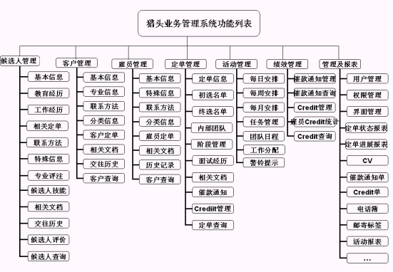 圖1獵頭業(yè)務(wù)管理系統(tǒng)功能框圖