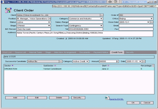 - Credit管理和查詢:根據(jù)雇員定單完成情況,賦予一定比例的傭金提成,自動(dòng)生成相關(guān)文件,通知財(cái)務(wù)等相關(guān)部門和管理者;