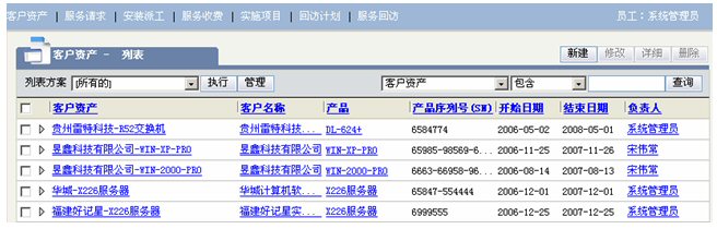 客戶資產(chǎn)/服務(wù)請(qǐng)求/服務(wù)派工/服務(wù)收費(fèi)/回訪計(jì)劃/服務(wù)回訪