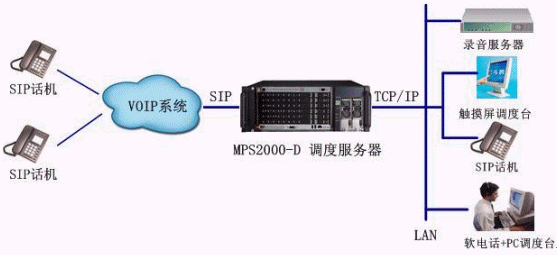 - MPS2000-D調(diào)度服務(wù)器作為一款I(lǐng)P指揮調(diào)度系統(tǒng)通過SIP協(xié)議,接入VOIP系統(tǒng),實(shí)現(xiàn)對(duì)IP終端用戶的調(diào)度控制;