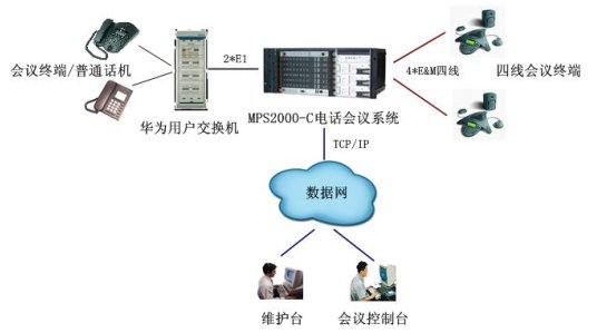 MPS2000-C通過四線接入POLYCOM的四線音頻會(huì)議終端,作為主會(huì)議室和幾個(gè)分會(huì)議室的會(huì)議終端。