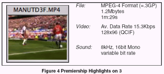 圖4展示的是一個(gè)英超聯(lián)賽精選節(jié)目屏幕截圖。這個(gè)文件的擴(kuò)展名是MP4,這正好于3GP是同樣的。(標(biāo)準(zhǔn)化文件擴(kuò)展名)。