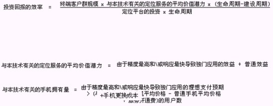 主要的因素有:終端客戶群的規(guī)模、定位平臺(tái)的投資、建設(shè)周期,請看下列公式(未經(jīng)實(shí)際統(tǒng)計(jì)驗(yàn)證,僅僅用于估算):