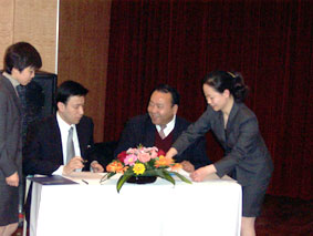 在簽約儀式上,上海自來水市北有限公司董事長王希高,中國信息化推進(jìn)聯(lián)盟客戶關(guān)系管理專業(yè)委員會常務(wù)副主任郭晨東,分別代表雙方正式簽署了認(rèn)證項(xiàng)目協(xié)議。