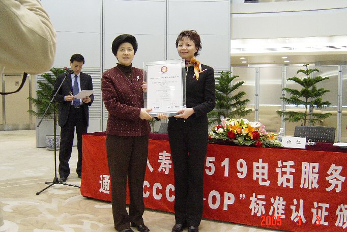 中國人壽保險股份有限公司業(yè)務管理部副總經(jīng)理楊紅在頒證儀式上發(fā)表了熱情洋溢的講話。她說,中國人壽保險股份有限公司在中國的壽險業(yè)中具有舉足輕重的地位、良好的業(yè)績表現(xiàn)和遍布全國的機構網(wǎng)絡,一貫秉承"用專業(yè)和真誠贏得感動"的服務理念,力求通過"熱誠、規(guī)范、準確、便捷"的服務回報廣大客戶多年以來的支持與信賴。中國人壽的呼叫中心自2001年建立以來,伴隨著公司的快速發(fā)展,在總分公司各級領導的關心、支持下,在各級中心管理人員和客服代表的共同努力下,在改善公司服務水平、提高客戶滿意度、促進公司業(yè)務發(fā)展等方面正發(fā)揮著越來越重要的作用,呼叫中心自身也取得了長足的發(fā)展。