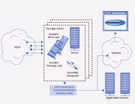 Aculab的Prosody DSP資源板卡最終被用于NVM的VoiceXML解釋器內(nèi)。它既提供數(shù)字網(wǎng)絡(luò)接口,也負(fù)責(zé)語音處理功能,以便Friends Reunited 能夠向其客戶提供新式的語音驅(qū)動(dòng)應(yīng)答業(yè)務(wù)。英國會員只需撥打比手機(jī)費(fèi)用還便宜的號碼0871 271 8000、國際會員需撥打 +44 870 055 3222 。會員輸入ID和密碼后,可留言、也可建立或進(jìn)入某一會議。由于NVM能夠保持平臺建立的費(fèi)用不增長,所以用戶呼叫的費(fèi)用可保持在更經(jīng)濟(jì)的范圍內(nèi)。究其原因,他們采用了Aculab硬件,使得交換、會議和文語轉(zhuǎn)換等語音處理功能都是免費(fèi)獲得的。否則,如果需要支付軟件許可證費(fèi)用,此項(xiàng)目的實(shí)施不會如此輕松。