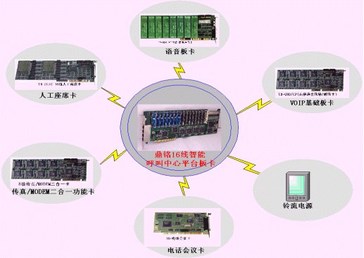 鼎銘公司將在本月隆重推出新一代的板卡級呼叫中心硬件平臺------DM016A/PCI多功能卡。DM016A/PCI系列語音卡是我公司十年來CTI技術(shù)的結(jié)晶,她涵括了目前市場中模擬語音處理卡、人工座席卡、傳真/MODEM卡、電話會議卡、高倍語音壓縮/解壓(VOIP)卡、高阻抗監(jiān)控錄音卡等功能和一體化的優(yōu)點(diǎn),并自帶鈴流電源,不需另外接接線盒和鈴流電源。在該卡上能開發(fā)出PBX、ACD、IVR、FAX/MODEM服務(wù)器、Agnet(座席)子、預(yù)約呼出、錄音監(jiān)控、電話會議、VOIP(需第三方的H.323協(xié)議)網(wǎng)關(guān)等多媒體呼叫中心所需的所有功能模塊、子系統(tǒng)。