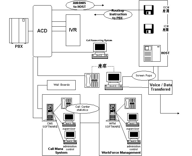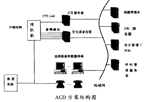這種方案的核心思想是在專(zhuān)用交換機(jī)+ACD的基礎(chǔ)上擴(kuò)展路由和統(tǒng)計(jì)的功能,開(kāi)放CTI -Link接口,用CTI技術(shù)實(shí)現(xiàn)通信和計(jì)算機(jī)的功能結(jié)合,再配以必要的語(yǔ)音和數(shù)據(jù)庫(kù)系統(tǒng),從而以強(qiáng)大的通信和計(jì)算機(jī)功能滿足呼叫中心的要求。
