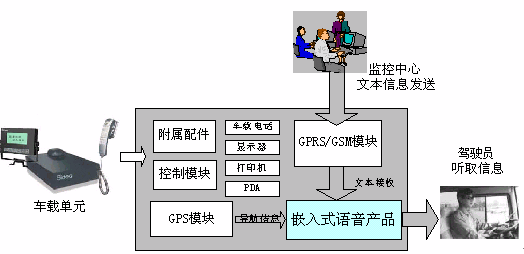 首先,當(dāng)車載GPS單元接收到由監(jiān)控中心發(fā)來的調(diào)度、提醒、叫車等信息時,語音合成會伴隨顯示器上的顯示,同步將文字讀出,轉(zhuǎn)變?yōu)榍逦鲿车脑捯,這樣一方面司機(jī)不用特意在駕駛中注意顯示屏的文字內(nèi)容而同樣可以及時獲取信息的內(nèi)容,另一方面也減少了因為分神駕駛而引發(fā)的交通安全隱患。