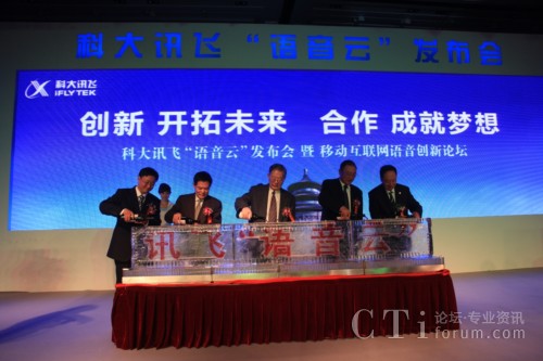 CTI論壇(ctiforum)10月29日消息(記者 潘婷婷): 2010年10月28日,“科大訊飛‘語音云’發(fā)布會暨移動互聯(lián)網(wǎng)語音創(chuàng)新論壇”在北京香格里拉飯店隆重舉行?拼笥嶏w作為中國語音產(chǎn)業(yè)領導者,在業(yè)界率先推出“訊飛語音云”,對于促進國家新近確定的七大戰(zhàn)略新興產(chǎn)業(yè)之一的“新一代信息技術”發(fā)展具有重大意義,將推動移動互聯(lián)網(wǎng)邁入語音時代,創(chuàng)新無限豐富的應用、創(chuàng)造廣闊的市場藍海。因此,此次發(fā)布會得到了各界的高度關注,各相關政府部門領導,聯(lián)想、騰訊、愛國者、優(yōu)視科技、播思通訊等各行業(yè)及移動互聯(lián)網(wǎng)領軍企業(yè)的代表,媒體界朋友,匯聚一堂、共襄盛舉,并就移動互聯(lián)網(wǎng)與語音產(chǎn)業(yè)的相互融合、創(chuàng)新發(fā)展、合力共贏進行了深入熱烈的探討。