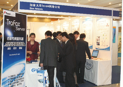 拓敏軟件Tomisoft與加拿大Eicon Networks共同展示了拓敏傳真服務器TraFax Server----企業(yè)級無紙化傳真解決方案。在精美的展板與宣傳冊的配合下,通過講解員的專業(yè)介紹,盡情地展示了目前國內(nèi)最優(yōu)秀的無紙化傳真解決方案的非凡風采。TraFax Server與CallCenter、 CRM、ERP的完美結(jié)合引起了與會代表們的關(guān)注。