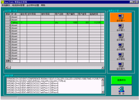 管理員只需將候選人員加入到左邊的會議人員中,再點擊"呼叫"按扭即可建立會議,系統(tǒng)自動呼叫會議各方的電話號碼,呼通后將自動加入設置的會議室,呼叫失敗自動重新呼叫;
