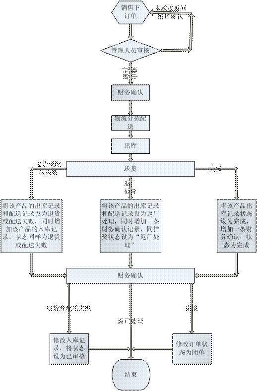 在呼叫中心系統(tǒng)中,為了更好地幫助企業(yè)進(jìn)行銷(xiāo)售管理,UltraCRM系統(tǒng)設(shè)有進(jìn)銷(xiāo)存管理。從產(chǎn)品的采購(gòu)、入庫(kù)出庫(kù)、退貨、返廠(chǎng)處理、庫(kù)存管理、庫(kù)存盤(pán)點(diǎn)到財(cái)務(wù)確認(rèn)都有一套完整的流程。參見(jiàn)圖7.22和7.23的產(chǎn)品入庫(kù)流程和出庫(kù)流程。所有在呼叫中心中進(jìn)行銷(xiāo)售的產(chǎn)品數(shù)據(jù)都分類(lèi)保存在系統(tǒng)的數(shù)據(jù)庫(kù)中,坐席人員可以根據(jù)產(chǎn)品型號(hào)、名稱(chēng)、關(guān)鍵字等進(jìn)行分類(lèi)查詢(xún)。各類(lèi)產(chǎn)品的基本參數(shù)、介紹也都包含在產(chǎn)品數(shù)據(jù)庫(kù)中,坐席人員可以很快地查到一項(xiàng)產(chǎn)品的基本信息,提高與用戶(hù)溝通的工作效率。