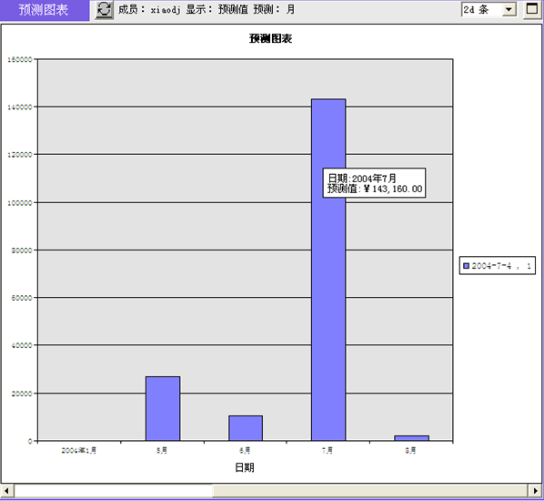 * 100% = 504,402.50元的一個預(yù)測值,在相同時間段的機會預(yù)測值將被累計求和。很顯然,可以在不同時間點(例如6月1日、7月1日、8月1日、9月1日)多次對2004年9月的銷售額進(jìn)行預(yù)測。得到一系列的銷售預(yù)測值變動趨勢。