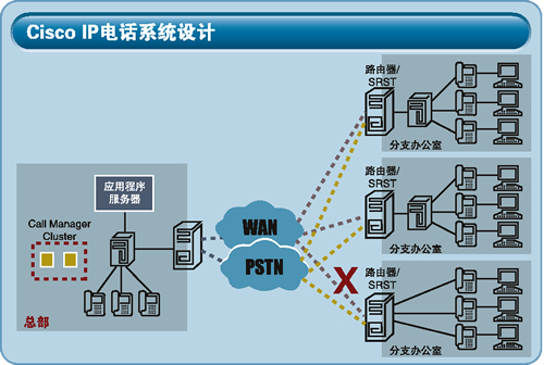 思科公司提供的IP電話系統(tǒng)由IP電話呼叫控制服務(wù)器、IP電話機(jī)和路由器構(gòu)成,是一個高可用性、功能強(qiáng)大、應(yīng)用靈活的解決方案。