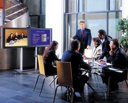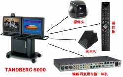 會(huì)議系統(tǒng)的組成非常簡(jiǎn)單,每個(gè)會(huì)場(chǎng)安放一臺(tái)視頻會(huì)議終端,終端接上電視機(jī)作為回顯設(shè)備、接上網(wǎng)絡(luò)作為傳輸媒介就可以了。一臺(tái)終端通常有一臺(tái)核心編解碼器、一個(gè)攝像頭,一個(gè)全向麥克風(fēng)以及一個(gè)遙控器。核心編解碼將攝像頭和麥克風(fēng)輸入的圖像及聲音編碼通過網(wǎng)絡(luò)傳走,同時(shí)將網(wǎng)絡(luò)傳來的數(shù)據(jù)解碼后將圖像和聲音還原到電視機(jī)和音響上,即實(shí)現(xiàn)了與遠(yuǎn)端的實(shí)時(shí)交互。終端通過呼叫IP地址或ISDN號(hào)碼進(jìn)行連接(專線無需撥號(hào))。但在有三點(diǎn)會(huì)場(chǎng)就必須采用MCU(視頻會(huì)議多點(diǎn)控制單元)進(jìn)行管理。