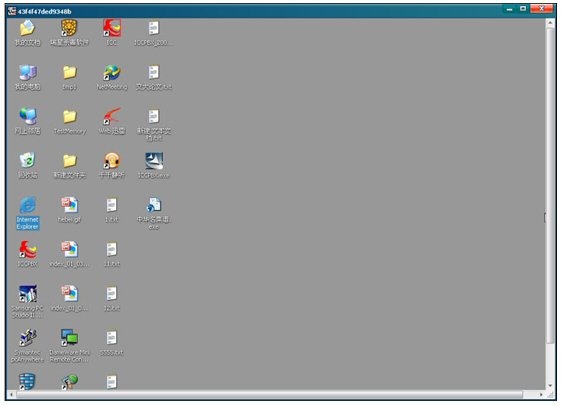 同時彈出一個ICC的共享框,共享框里出現(xiàn)的就是納稅人的桌面(納稅人桌面的背景將被系統(tǒng)自動設置成一種單一的色彩,如下圖納稅人桌面背景被設置成灰色,所以坐席看到納稅人的桌面都是單一的顏色),坐席把鼠標放在共享框里,就可以像操作自己的電腦一樣來操作納稅人的電腦了。如下圖:
