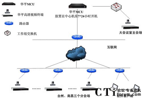 華平根據(jù)東森控股的實際需求,為用戶搭建了覆蓋上海、南昌、臺州辦公區(qū)、臺州營業(yè)部的高標清混合組網(wǎng)和軟硬件混合組網(wǎng)方案。系統(tǒng)基于公共互聯(lián)網(wǎng)實現(xiàn)部署,并充分利用了華平多種網(wǎng)絡(luò)接入混合的優(yōu)勢,并采取MCU雙網(wǎng)卡接入解決方案,全面實現(xiàn)了電信、網(wǎng)通的網(wǎng)絡(luò)良好互通,系統(tǒng)極大的拓展了應(yīng)用的范圍,即使在差旅途中,只要能接入Internet網(wǎng)絡(luò),用戶就可以輕松地參與會議交流,如同身與各方坐一個會議室。系統(tǒng)還提供強大的數(shù)據(jù)輔助功能,參會者可以將各種需要交流的數(shù)據(jù)、圖形、報表、文字等信息同步顯示給所有相關(guān)人員,方便的進行工作交流,業(yè)務(wù)匯報和討論等,使異地溝通變的更加簡單和自如。
