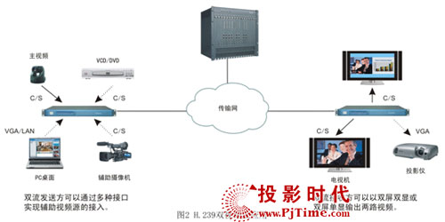 科達(dá)H.239雙視頻流具有非常靈活的輔助視頻輸入和輸出特性。其中,輸入支持VGA、復(fù)合端子、S端子、以太網(wǎng)等多種接口,PC桌面講稿等內(nèi)容可通過VGA輸入發(fā)言會場終端,不方便直接接入的PC桌面可借助LAN通過以太網(wǎng)輸入發(fā)言會場終端,資料碟片(VCD/DVD)、實(shí)物外觀(輔助攝像機(jī))可通過復(fù)合端子、S端子輸入發(fā)言會場終端。雙流輸出支持雙屏雙顯和雙屏單顯,雙屏雙顯時(shí),主視頻和輔助視頻通過兩臺顯示設(shè)備分別輸出,雙屏單顯時(shí),主視頻和輔助視頻以畫中畫或一左一右形式通過單臺顯示設(shè)備輸出。
