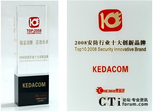 科達(dá)榮獲“2008安防行業(yè)十大創(chuàng)新品牌”