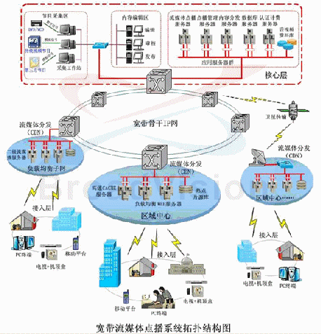 - 寬帶流媒體運(yùn)營(yíng)管理支撐系統(tǒng),包括點(diǎn)播內(nèi)容的采集、管理、內(nèi)容分發(fā)、負(fù)載均衡、計(jì)費(fèi)等功能模塊;