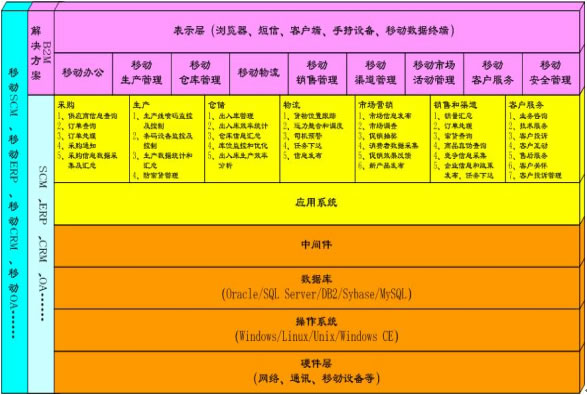 隨著移動商務(wù)時代的到來,電子商務(wù)時代的企業(yè)信息化系統(tǒng)(或者企業(yè)管理系統(tǒng)),包括SCM(供應(yīng)鏈管理)、ERP(企業(yè)資源規(guī)劃)、CRM(客戶關(guān)系管理)、OA(辦公自動化)和財務(wù)系統(tǒng)等等將逐漸向Mobile-SCM(移動供應(yīng)鏈管理)、Mobile-ERP(移動企業(yè)資源規(guī)劃)、Mobile-CRM(移動客戶關(guān)系管理)、Mobile-OA(移動辦公)等演變,并隨著應(yīng)用的逐漸普及,給企業(yè)的生產(chǎn)經(jīng)營流程帶來巨大而深刻的變化。