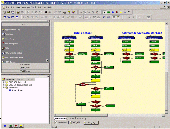 易虹eCRM解決方案中,利用易虹德龍的產(chǎn)品(Delano e-Business Interaction Suite)來實(shí)際和實(shí)現(xiàn)客戶服務(wù)與客戶關(guān)照流程。下圖是一個(gè)客戶關(guān)照流程的設(shè)計(jì)過程: