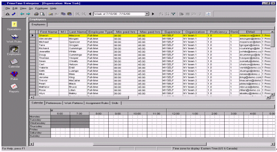 除個(gè)人信息以外,還有每個(gè)人的技巧應(yīng)用能力和工作效率也必須要記錄在系統(tǒng)之中,工作日程和預(yù)測(cè)模型的制定是否合理主要看員工的工作時(shí)間和工作效率。圖6展示的就是典型的員工排班界面。這些信息使用了ACD的數(shù)據(jù),預(yù)測(cè)某個(gè)技能組在特定的時(shí)間需要多少個(gè)員工才能應(yīng)付預(yù)測(cè)出的電話量。WFMS系統(tǒng)可以通過(guò)各種不同的渠道來(lái)體現(xiàn)和存儲(chǔ)這些人員信息。