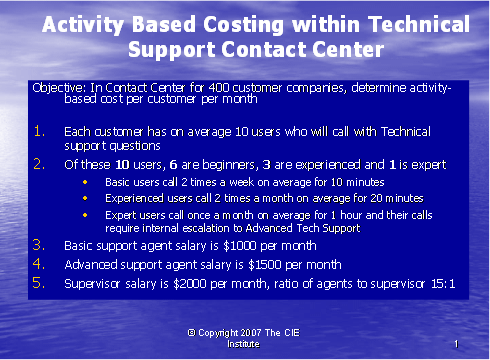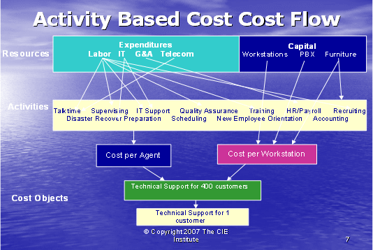 呼叫中心業(yè)務包括大量單獨的行動 — 行動成本法(ABC)使我們跟蹤那些行動以至于更清楚地了解支持一個客戶的所需事項。傳統(tǒng)上,呼叫中心成本是根據投入來衡量的:人數,設備量,設施的規(guī)模。為了了解服務一個客戶所花費的成本量,呼叫中心的主管必須確定這些行動如何與該客戶相聯系的。只有做到這一點,行業(yè)才能知道來自該客戶的收入是否超出為其提供服務所產生的成本。如果服務的成本大于收入,那么這個客戶對于行業(yè)來說是無利可圖的,所以確定哪些客戶有利可圖和哪些客戶無利可圖是很重要的,這樣,行業(yè)才可以根據客戶定價和客戶服務策略有利地進行管理。