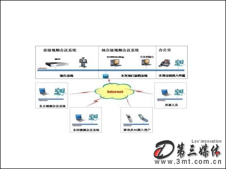 此外,為保證外出領(lǐng)導或員工不會錯過任何一次重要會議,該套系統(tǒng)需要支持與普通電話、手機等語音終端的實時接入,而專網(wǎng)外計算機桌面終端地接入,可保證外出的干部能夠通過普通計算機參加重要會議或培訓。該平臺還要能夠通過升級支持3G技術(shù)的接入,從而使整套系統(tǒng)能夠順應(yīng)未來通訊技術(shù)的發(fā)展。