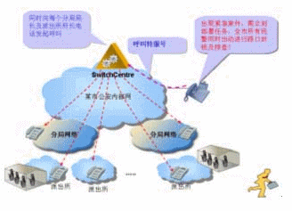 在公安系統(tǒng)中,有時候出現緊急案件,需立刻部署任務,例如要求全市所有民警同時出動進行路口封鎖及排查!如果一個一個打電話通知將會很麻煩,如果有電話廣播功能將是很方便的,可以同時接通很多電話,將命令廣播下去。華為3Com公司V2oIP系統(tǒng)在強大的GK支持下,只要事先定義了特服號對應的電話號碼群組,撥通特服號就能實現電話廣播。