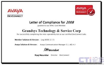 2008年7月 —Grandsys(宏盛高新技術(shù)有限公司)宣布其自創(chuàng)品牌[Grandsys LOG8000 錄音與質(zhì)檢解決方案]正式通過AVAYA DevConnect 的認(rèn)證。Grandsys正是全球為數(shù)不多的已經(jīng)通過該項認(rèn)證的AVAYA 合作伙伴之一,包含知名廠家Nice及Verint等,這代表Grandsys的技術(shù)已達(dá)到國際知名廠家的水平, 國內(nèi)客戶也因此有機(jī)會享受到最優(yōu)質(zhì)的產(chǎn)品及服務(wù)。